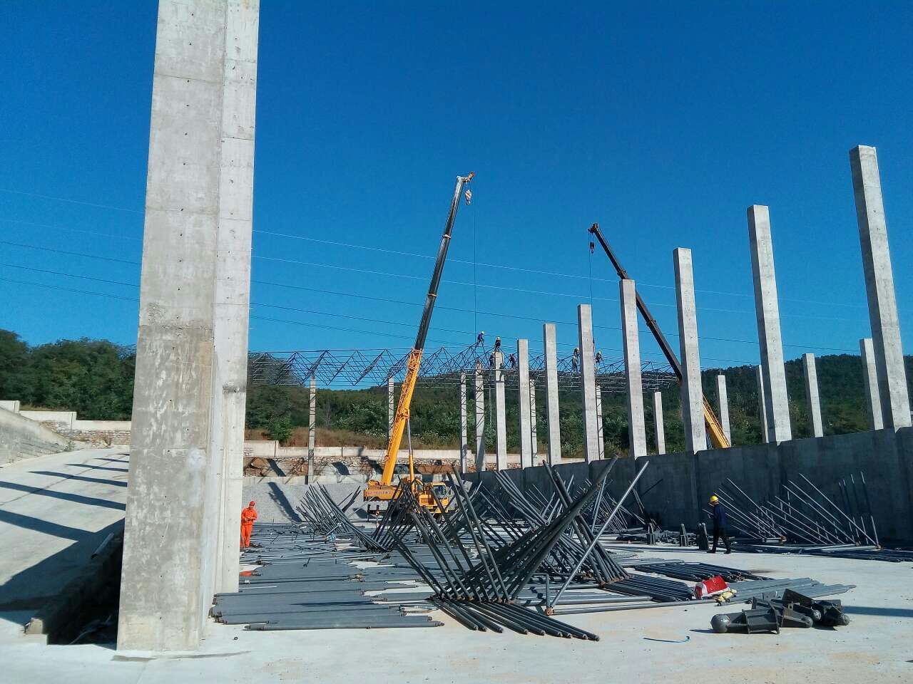 5.网架松江钢结构表面处理:抛丸、喷沙除锈,喷锌、喷铝、喷塑等工艺施工!